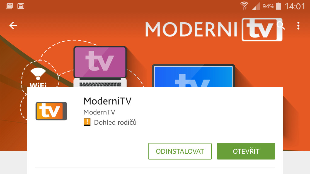 Instalujte aplikace ModerniTV postupem určeným pro operační systém ve Vašem telefonu, např. pro Android použijte Obchod Play. Seznam podporovaných operačních systémů je k dispozici zde.